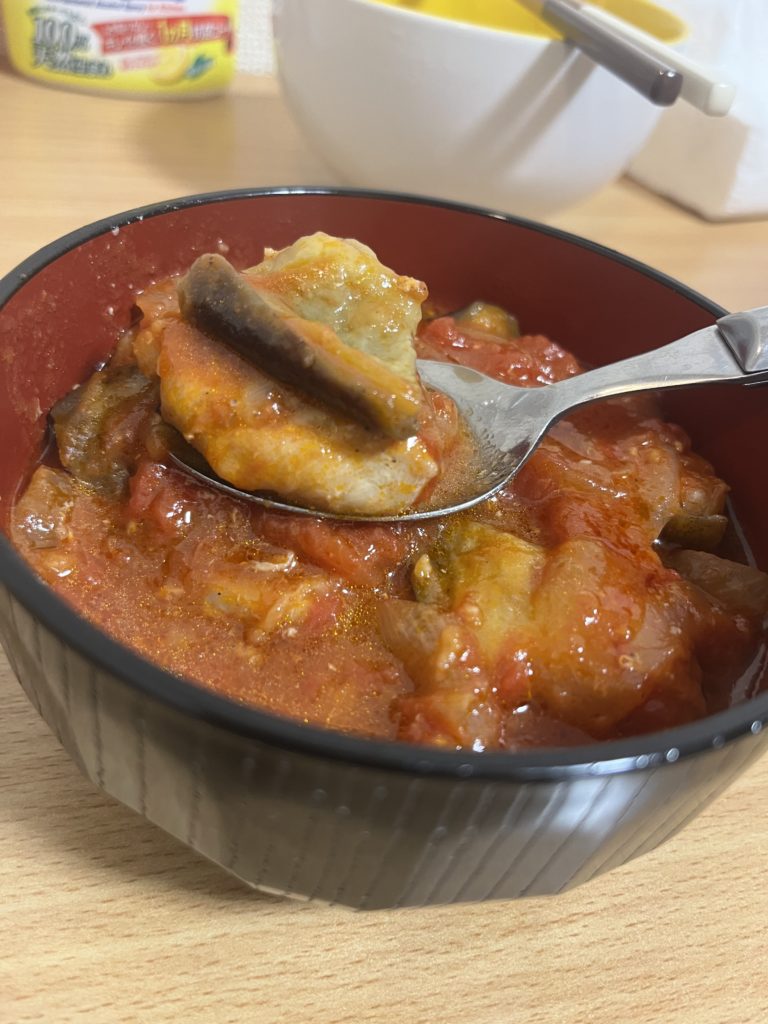 このあいだセブンイレブンで売ってたチキンのトマト煮も美味かったけど、それより美味しく作れるかなあ、なんて思いながら作ってみました。